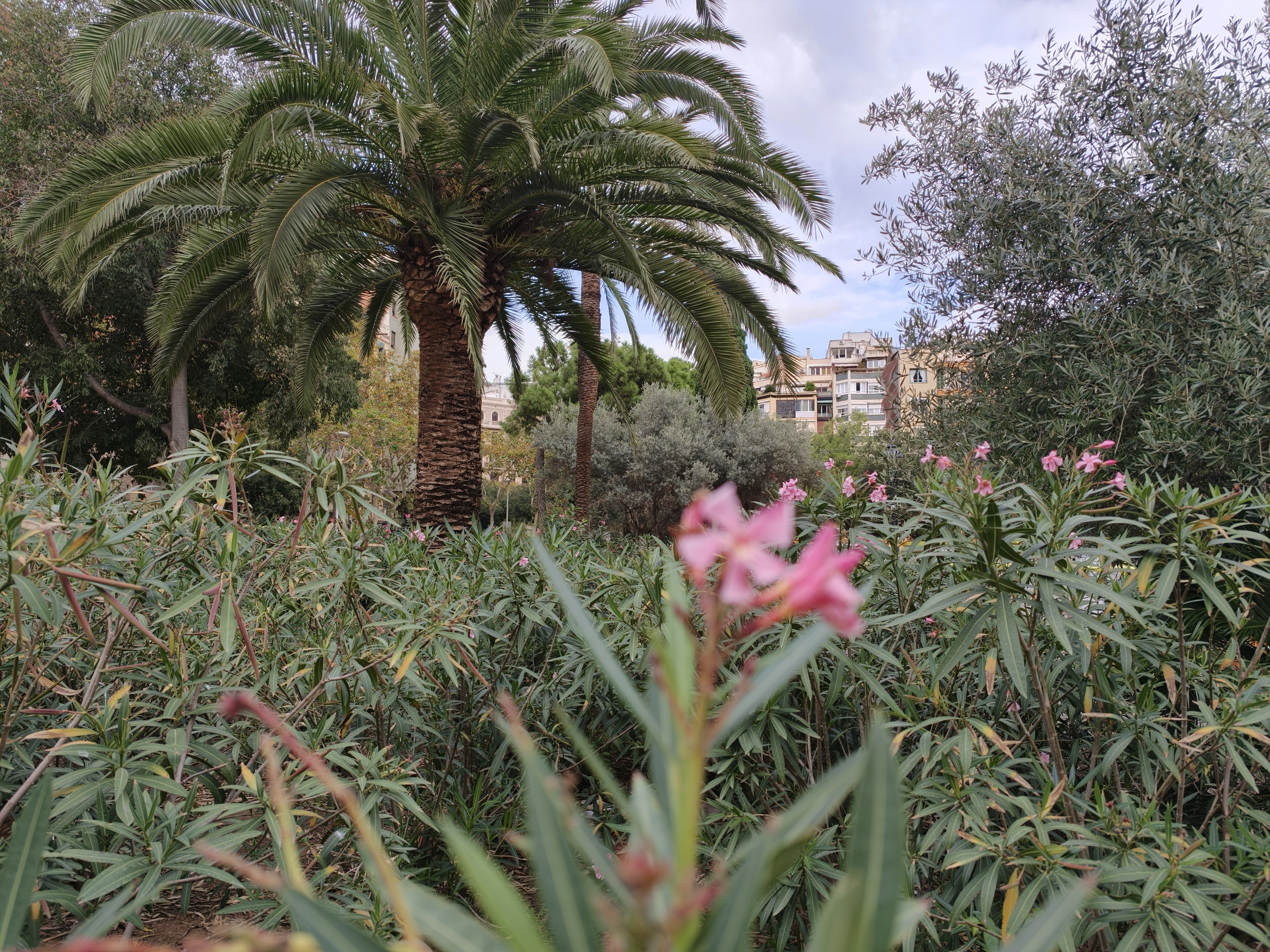 Het is echt balen dat er geen zonnetje was, want dat maakt die palmbomen toch net iets minder tropisch, maar je ziet wel dat de Find X9 Pro op zich wel zijn best doet om de kleuren weer te geven op een realistische manier. Er is nu eenmaal veel beige in Barcelona, maar dat komt er ook heel goed uit op de foto’s. Soms neigt het wel een beetje naar flets, maar je ziet aan de foto met de kerktoren en met de scooter dat hij niet alles flts maakt, maar dat dat wel echt door de wolken lijkt te komen.