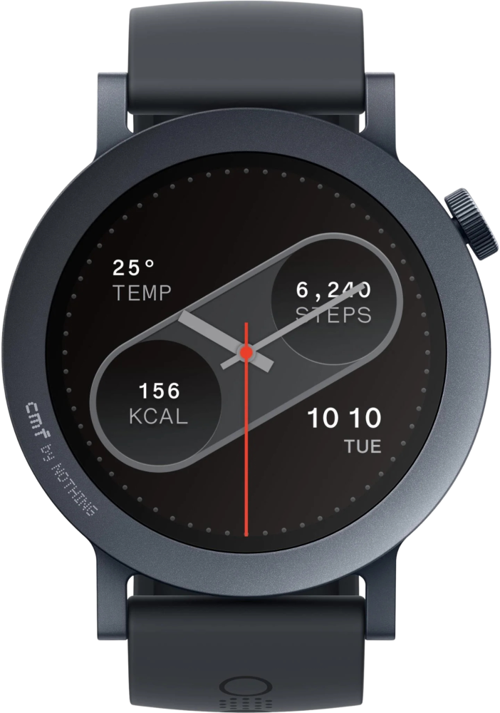 De bediening is eenvoudig. Het 1,32 inch AMOLED-scherm reageert vlot en menu’s zijn logisch opgebouwd. Swipen in verschillende richtingen opent instellingen, meldingen of widgets. De draaiknop aan de zijkant kan gebruikt worden om door menu’s te bladeren. Het koppelen verloopt via de CMF Watch-app, waarvoor een account vereist is.