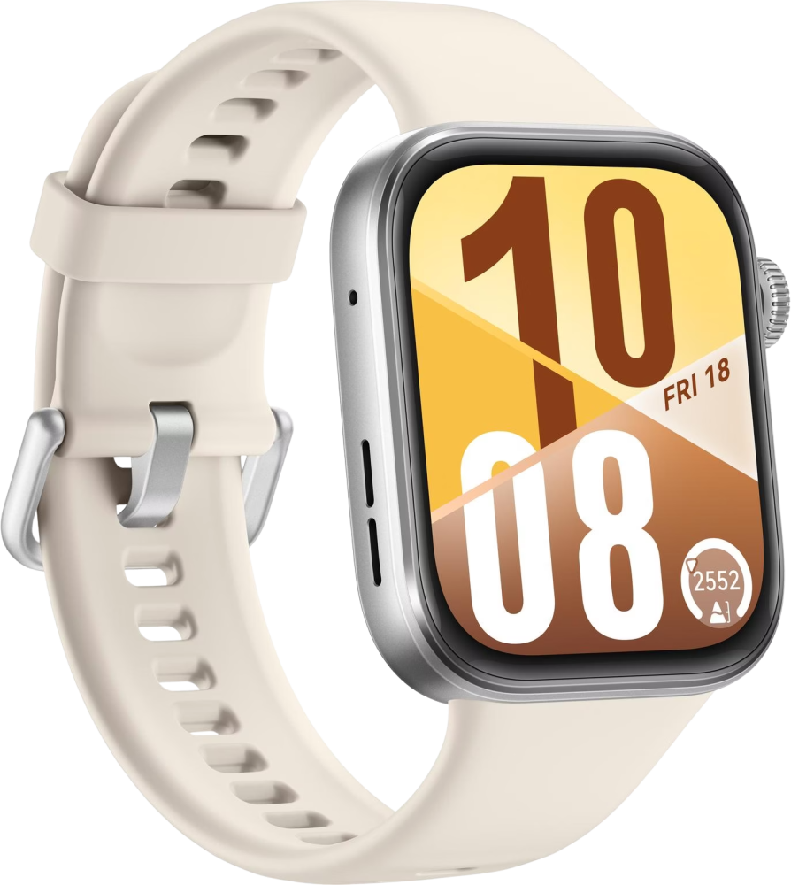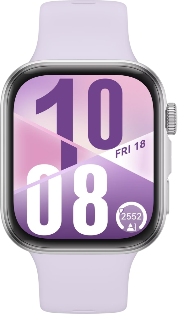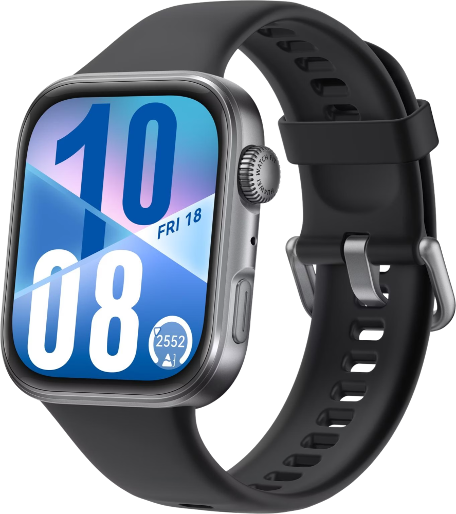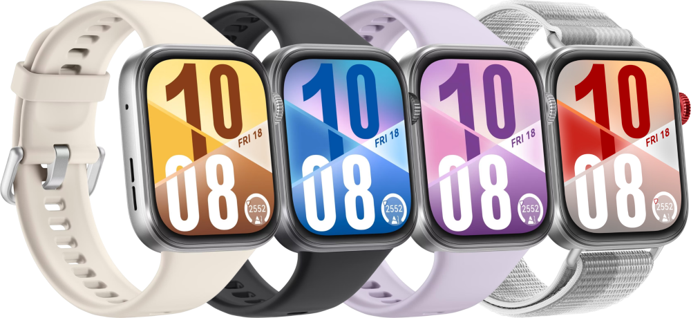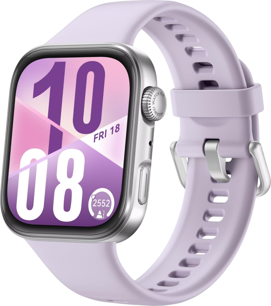 De Huawei Watch Fit 4 is de nieuwste slimme sporthorloge van Huawei met een strak, rechthoekig ontwerp. Het apparaat valt op door zijn lichte gewicht (27 gram), slanke profiel (9,5 mm dik) en grote 1,82 inch scherm met een helderheid tot 2000 nits. Dankzij de 120 Hz verversingssnelheid is het scherm vloeiend in gebruik, en het curved design maakt het moderner dan zijn voorganger. De smartwatch is beschikbaar in vier kleuren: zwart, wit, paars en grijs.