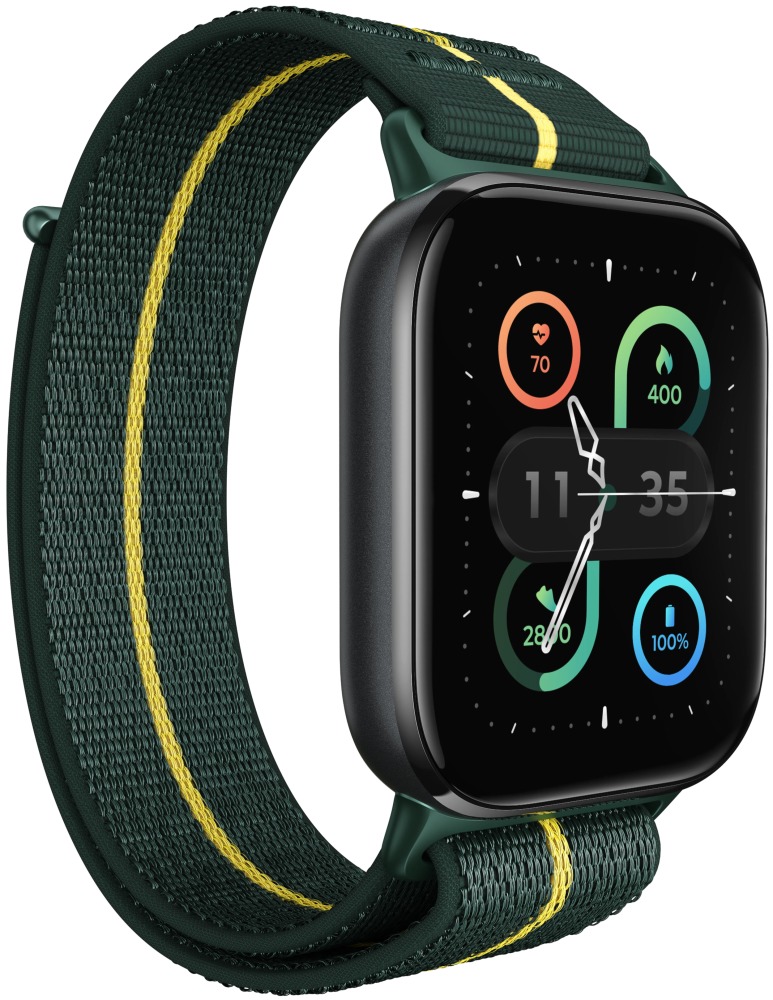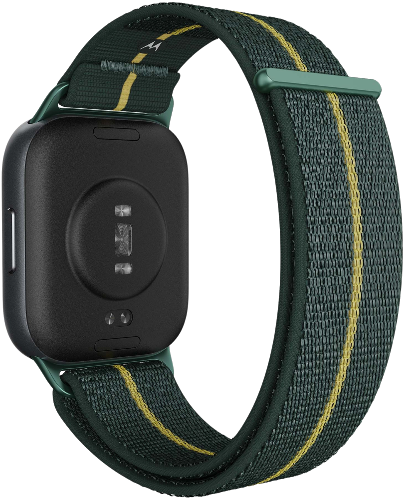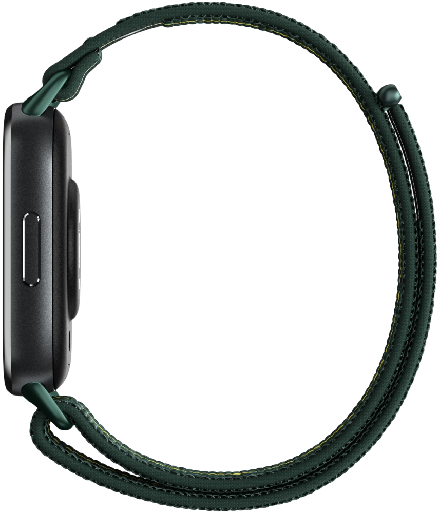 Het horlogebandje is gemaakt van textiel met klittenbandsluiting en is verwisselbaar met 22mm-bandjes. De kleur is Trekking Green. Hoewel dit bandje comfortabel kan zijn, is het mogelijk minder geschikt voor iedereen vanwege het materiaal en het sluitingsmechanisme.