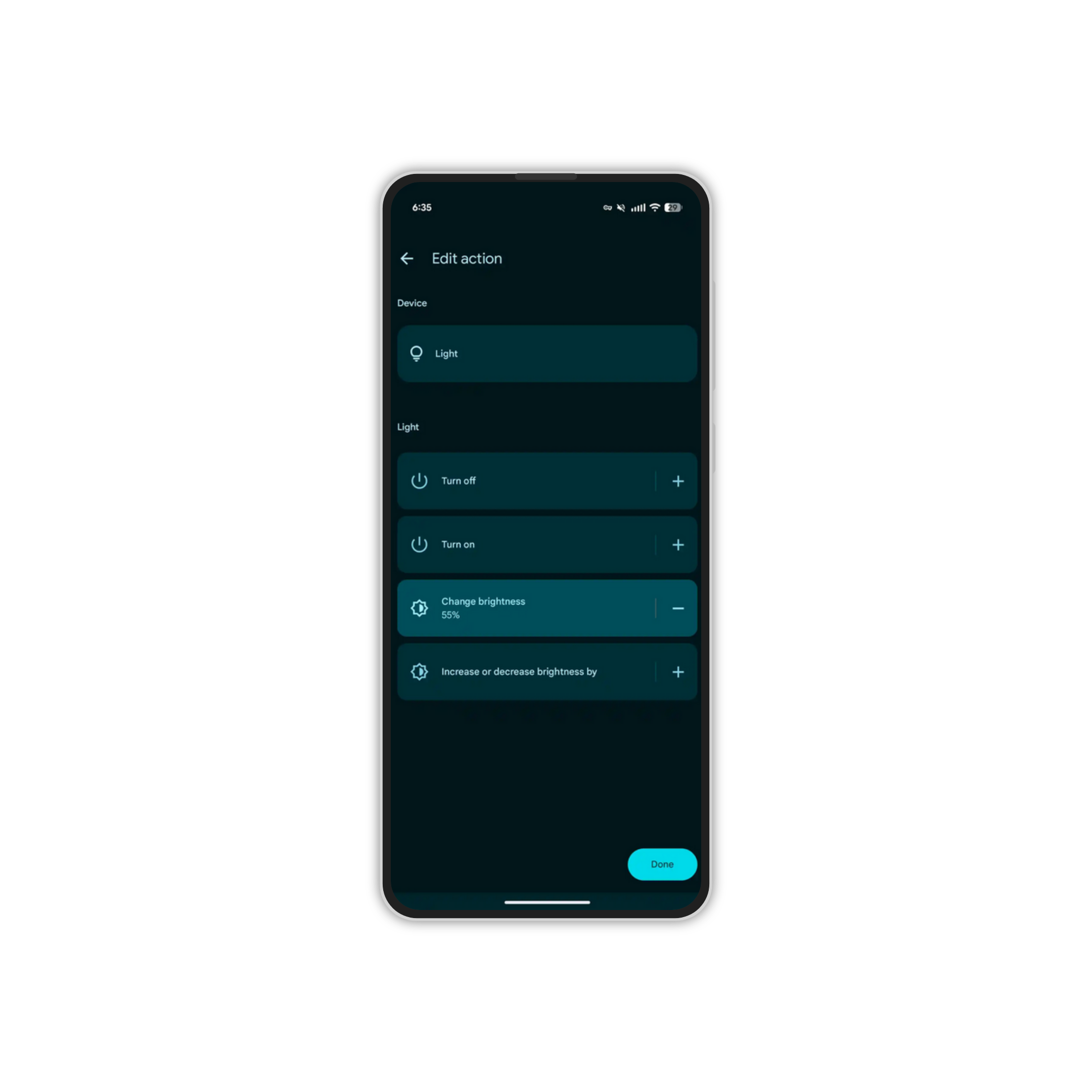 Voorwaarden kunnen gebaseerd zijn op locatie, tijd of het moment in de week, terwijl acties bestaan uit zaken als een bericht uitzenden via speakers, apparaten bedienen, meldingen verzenden, vertragingen instellen of zelfs vragen aan Google Assistant. Je kunt eenvoudig onderdelen verwijderen door erover te vegen en schakelen of uitschakelen gebeurt via een duidelijke toggle bovenaan. De interface heeft een frisse Material 3-uitstraling en voelt modern en overzichtelijk aan.