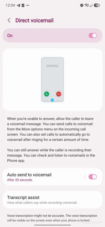 Naast de fixes vond dezelfde gebruiker een compleet nieuwe functie. Deze heet Direct Voicemail en geeft je de mogelijkheid om bellers direct door te sturen naar je voicemail, zonder dat je daar verder iets voor hoeft te doen. In de afbeeldingen is te zien dat je inkomende telefoongesprekken direct na een aantal seconden naar voicemail kunt doorsturen. Ook is het mogelijk om via kunstmatige intelligentie de voicemail in tekst te lezen. Iedereen die wel eens een iPhone heeft gebruikt herkent de functie mogelijk als Live Voicemail uit iOS. Het is nog de vraag of we die laatste functie ook in Nederland krijgen. Hier zijn de regels rondom het opnemen van geluid en dat verwerken met AI behoorlijk streng.