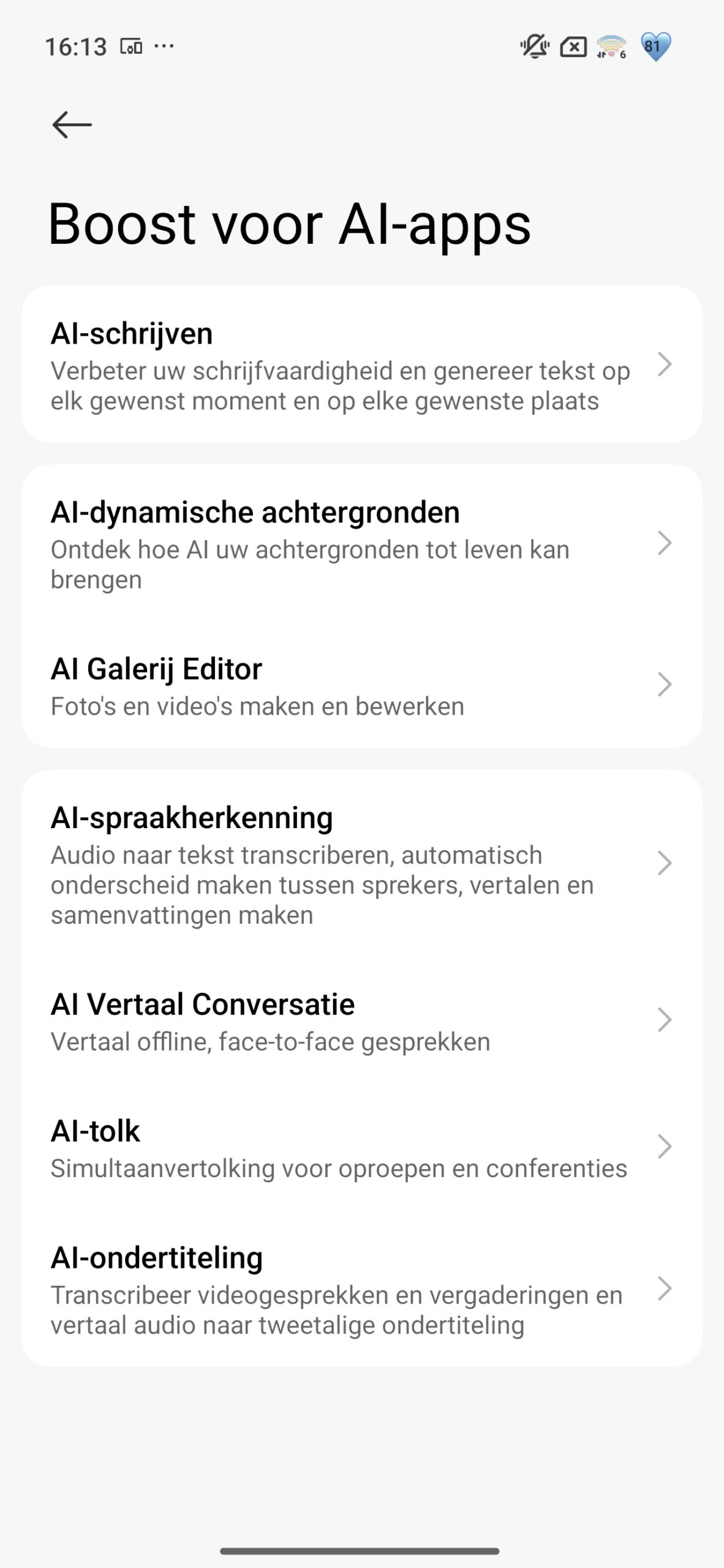 Nog zo’n heikel punt is de overbodige kunstmatige intelligentie. HyperOS 2 heeft ‘Boost voor AI-apps’ en dat is wat mij betreft een enorm loze term. AI-schrijven is gewoon een vervanging van normaal typen, het nut van AI-dynamische achtergronden zal ik voorlopig niet zien en de AI Galerij Editor is misschien wel de reden van de bijzondere kattenfoto’s die ik bij weinig licht maak. De enige functie die ik mijzelf ooit daadwerkelijk zie gebruiken is een AI Vertaal Conversatie. Deze optie moet het mogelijk maken om live te vertalen zodat je gesprekken kunt voeren met iemand zonder dat jullie dezelfde taal spreken. Het is een behoorlijk niche-optie, maar de enige waarvan ik daadwerkelijk het nut zie.