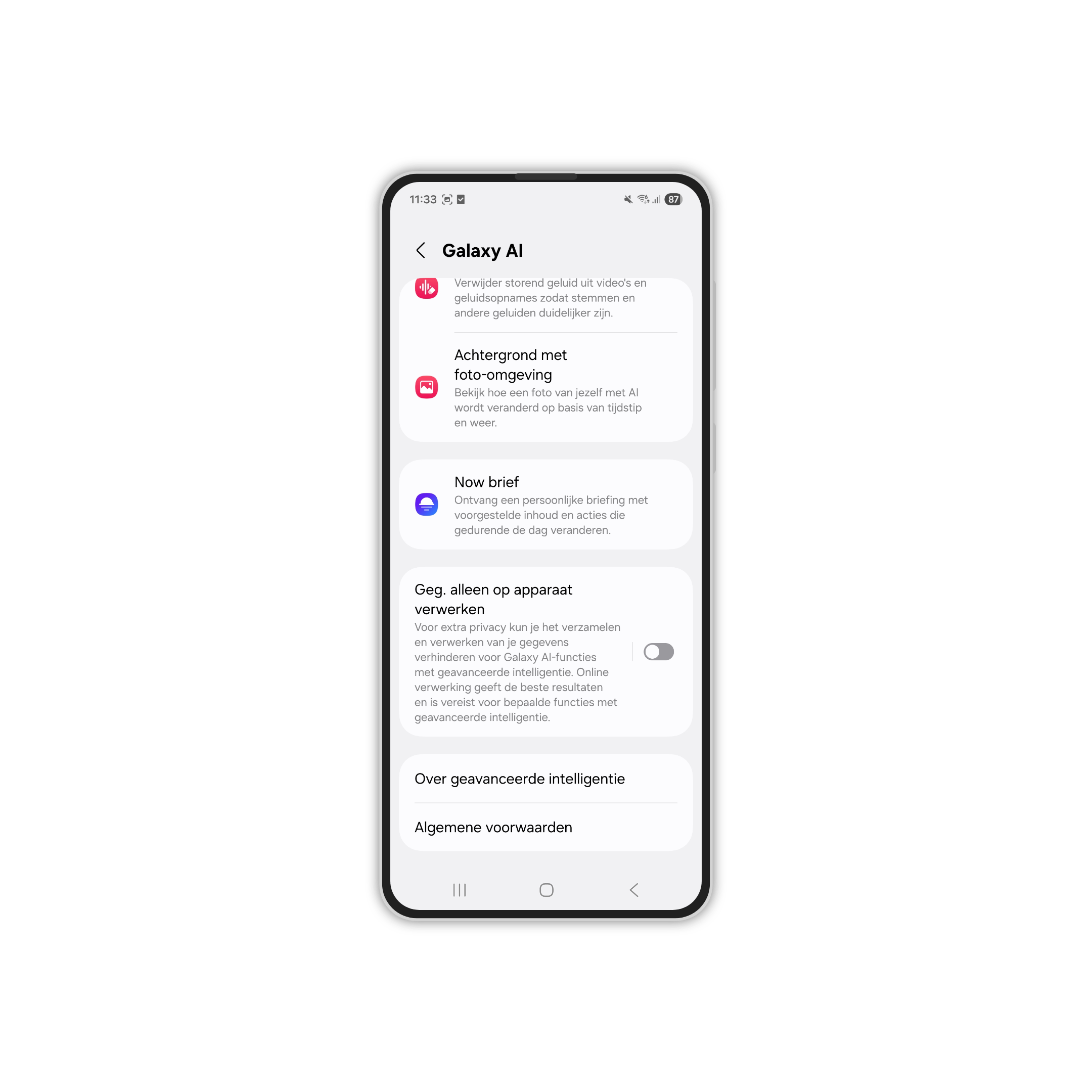 Werkte dit niet, dan zijn er meer manieren om het niet meer te tonen. Veel mensen stellen dat je het via Instellingen -> Galaxy AI kunt uitzetten, maar ook dat is niet het geval. Je krijgt dan alleen dit te zien:
