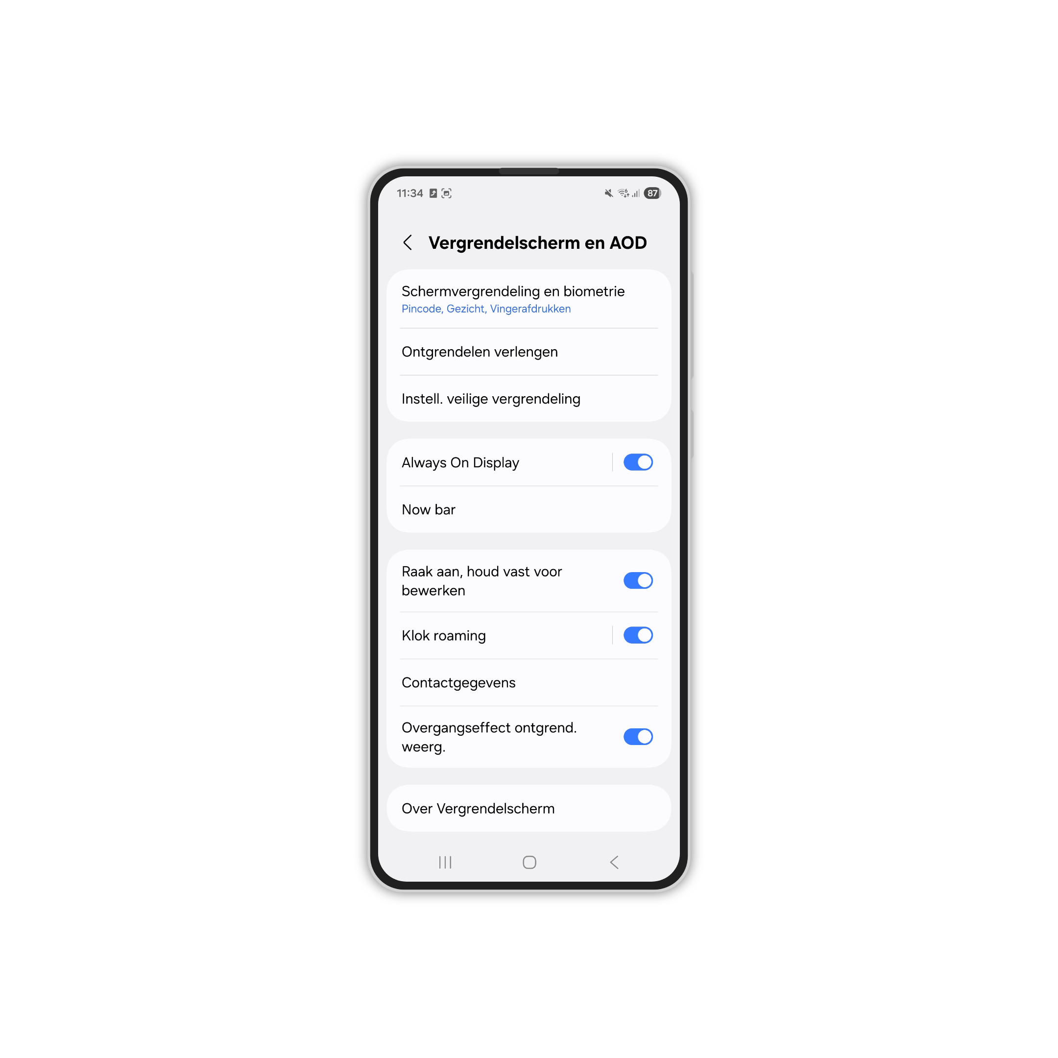 - Ga naar de Instellingen op je telefoon en kies dan Vergrendelscherm en AOD