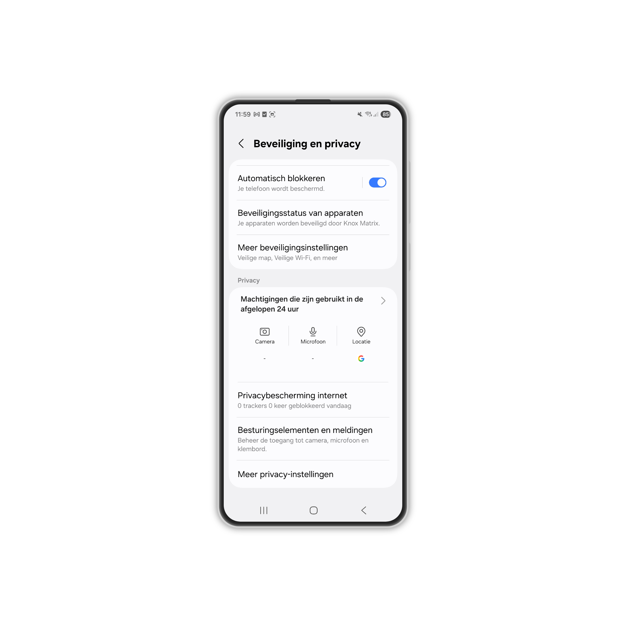 2. Selecteer Beveiliging en privacy. 3. Klik op Meer privacyinstellingen.