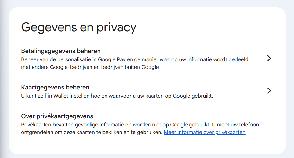 - Ga onder Gegevens en Privacy naar Kaartgegevens beheren